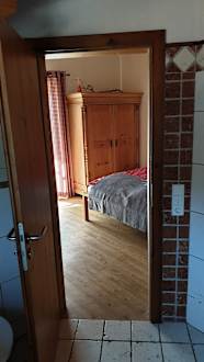 Hauptschlafzimmer mit Blick von Hauptbad