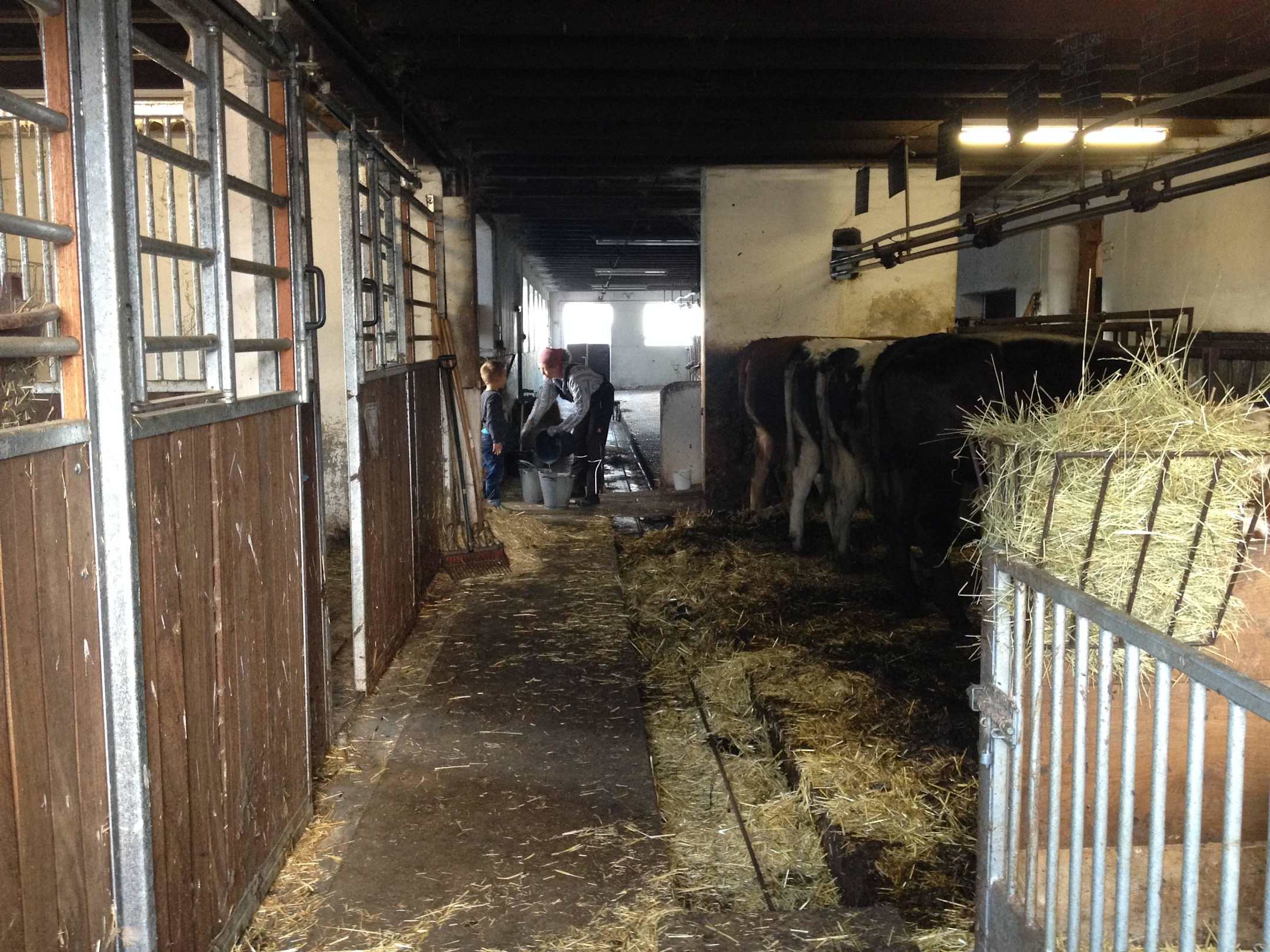 Rechts die Kälber, links Ziege und Hasen