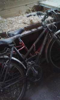 Verstaubte Fahrräder in der Spielscheune