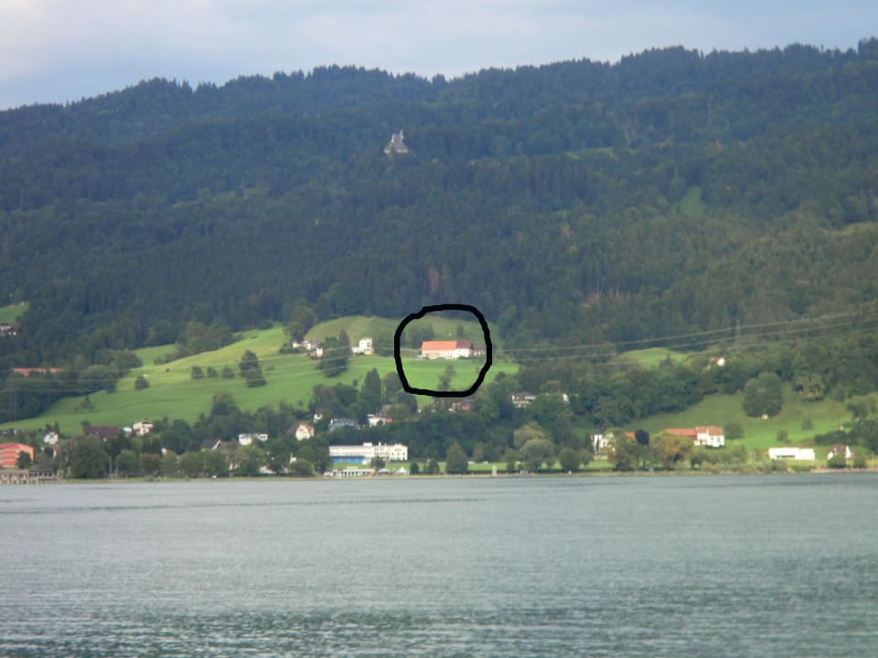 Gästehaus Kaufmann vom See aus gesehen