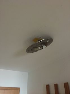 Lampe im Gang die halb von der Decke hängt