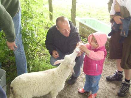 Fütterung der TiereAuch die Kleinsten machen mit. Larissa füttert das kleine Lämmchen. Sie ist überglücklich.