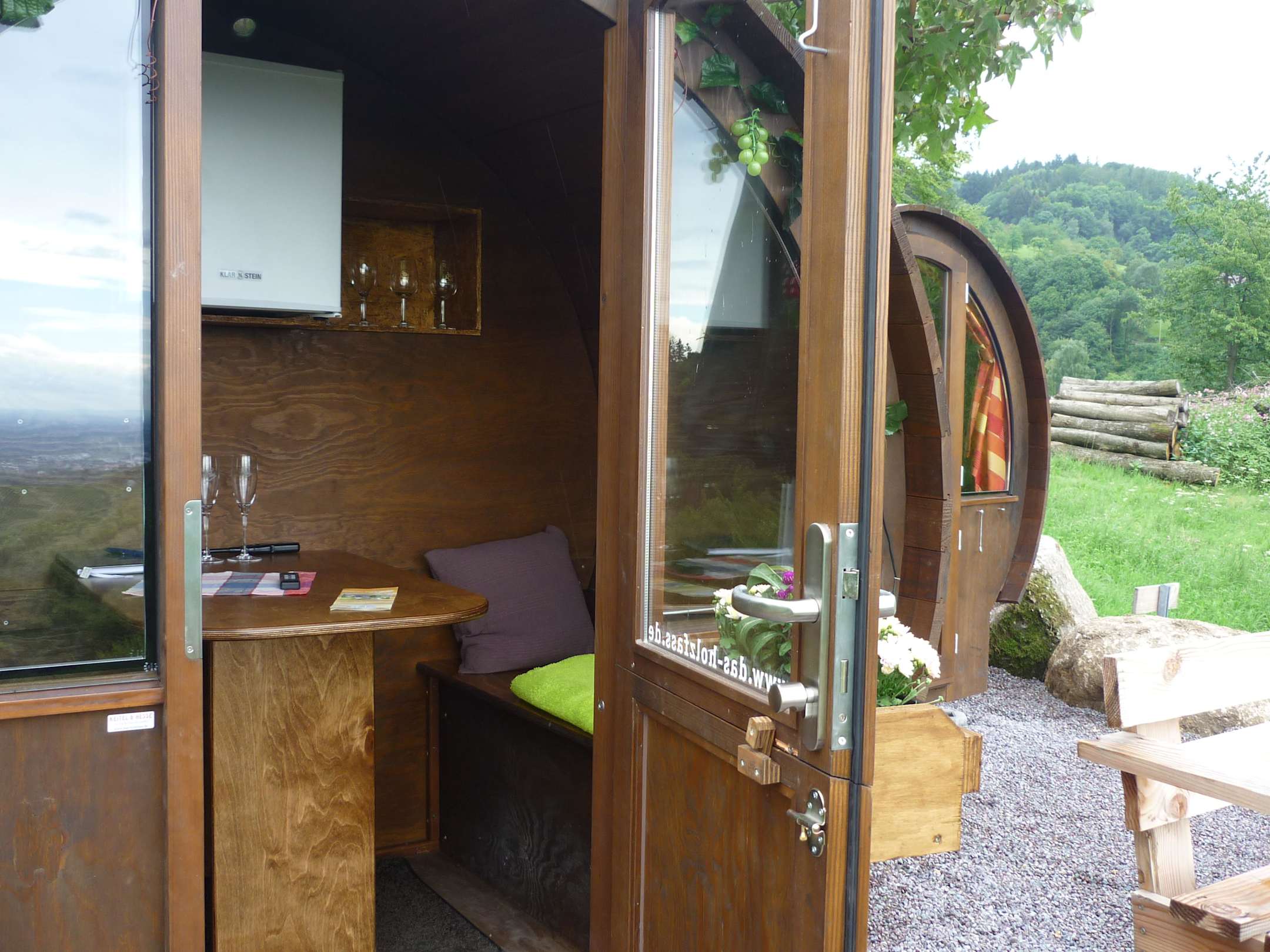 Gemütliche Sitzecke im Weinfass