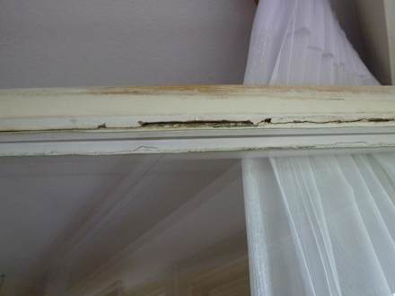 Die Balkontür ohne Kitt in der Scheibe!
