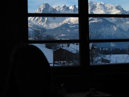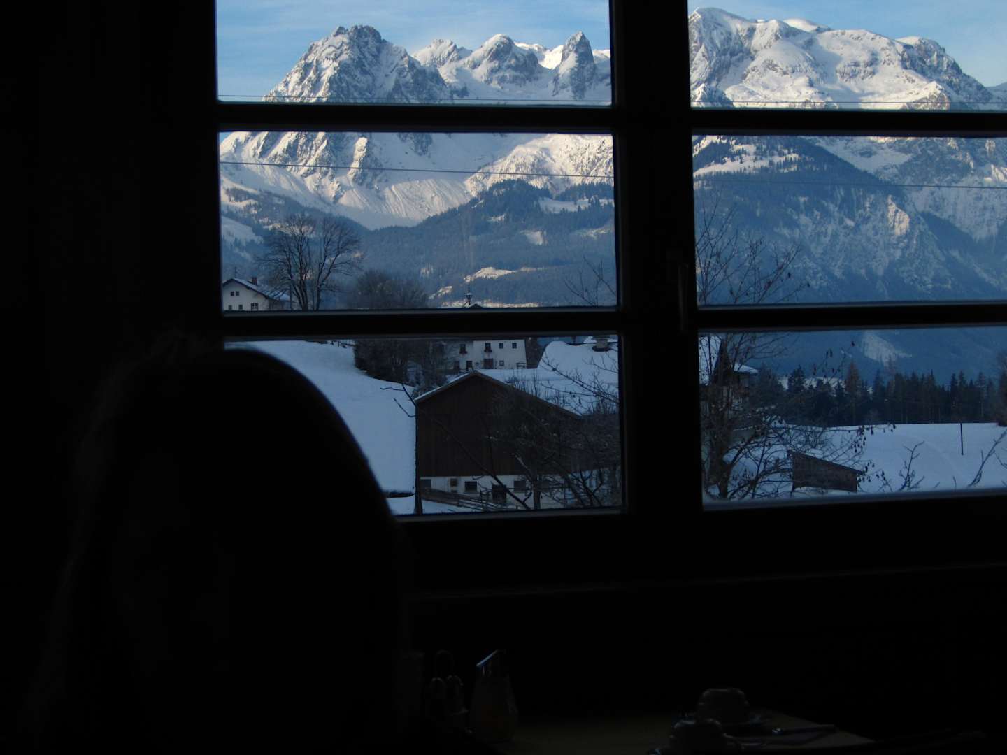 Blick vom Frühstücksplatz auf das Massiv des Hochkönig