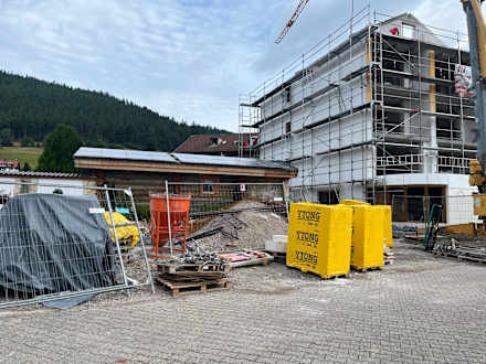 Blockhaussaunen, mitten im Bauschutt und Baumaterialien