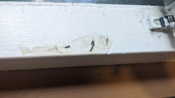 Eingetrocknete Kotreste am Fenster