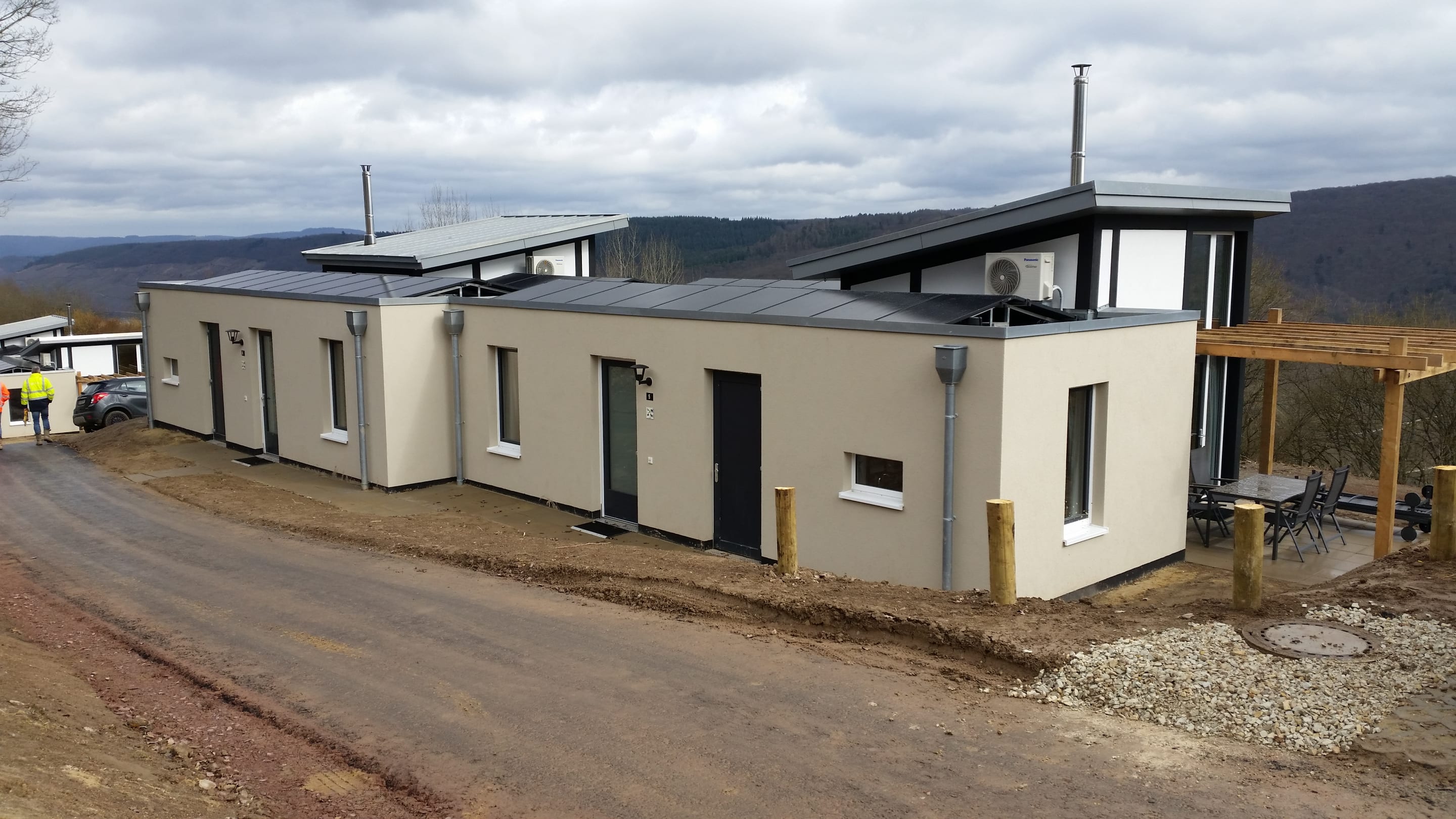 Die Wärmetauscher für die Wärmepumpen befinden sich auf dem Dach der Häuser.