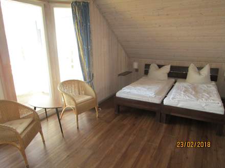 Schlafzimmer oben mit Balkon und Seeblick