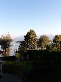 Blick vom Balkon auf den SeeDie große Ferienwohnung hat (wie in der Preisliste angegeben) einen seitlichen Blick auf den See.