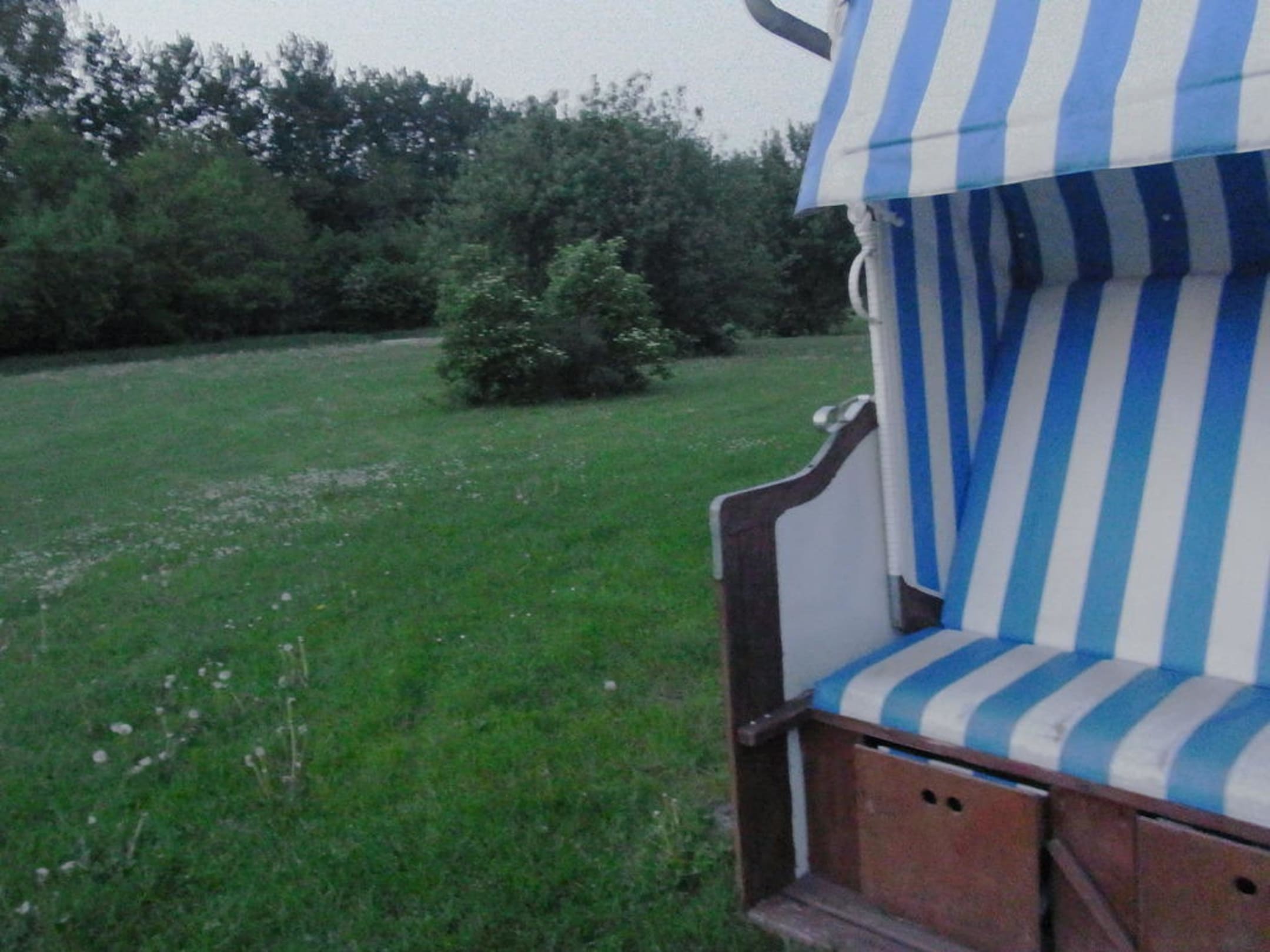 Strandkorb vor unserem Haus mit Gartenblick.