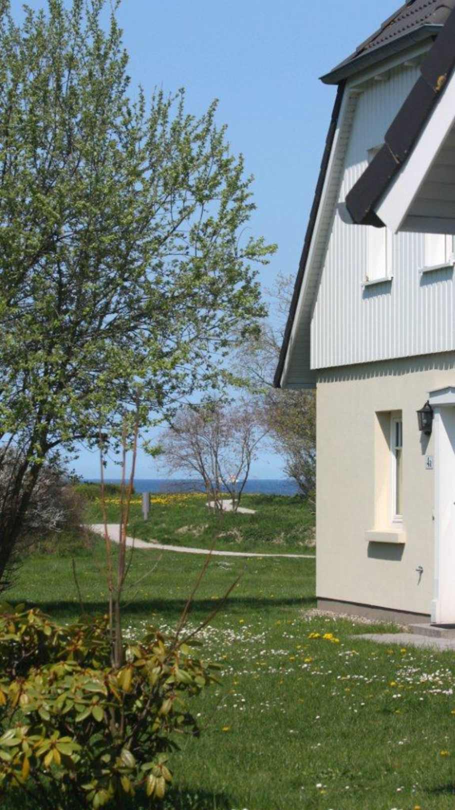 Ferienhaus und dahinter die Ostsee