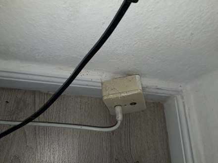 ZimmerWohnzimmer. Ecken nicht sauber. Auch sieht man hier wie renoviert wurde. Alles wird mitgestrichen auch Steckdosen