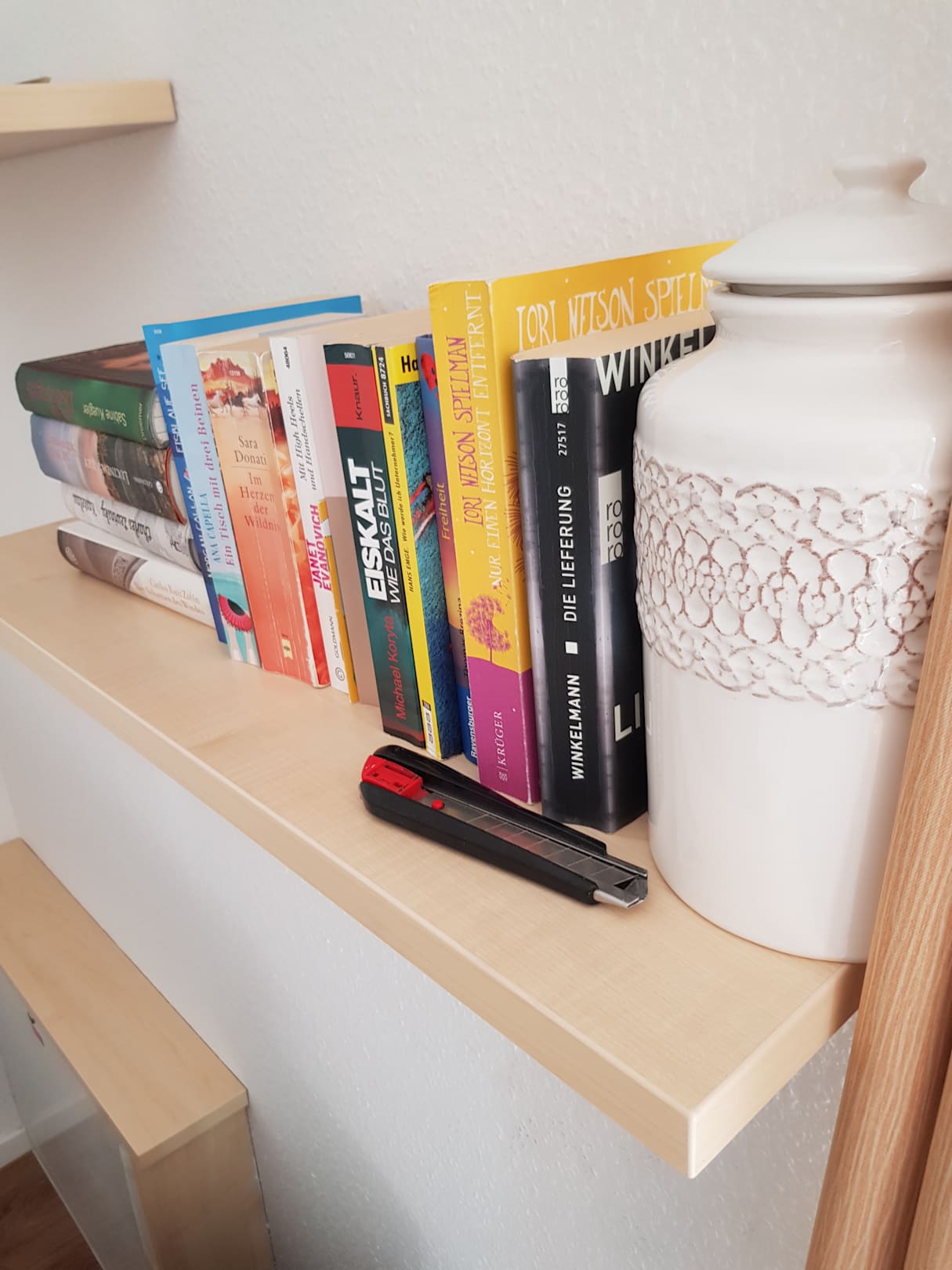 Teppichmesser auf dem Bücherregal
