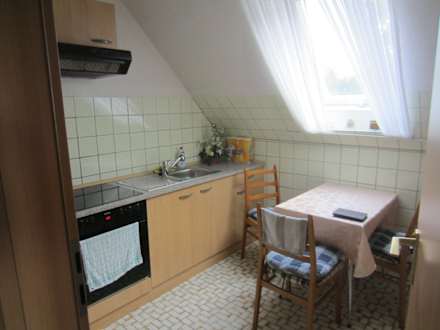 Küche mit Herd und Essecke
