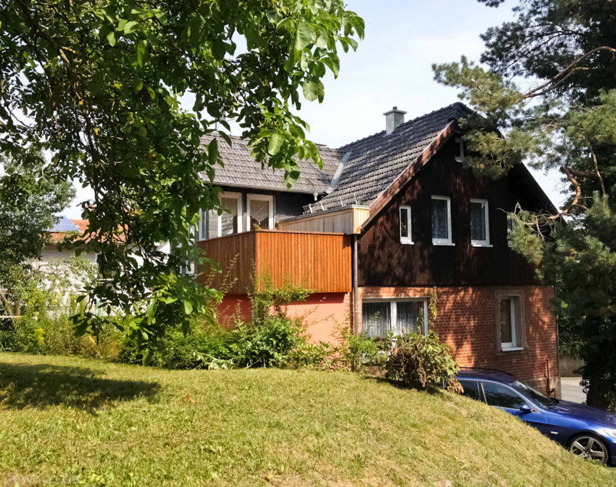 Blick vom Kaffeeweg / Parkplatz links vom Haus