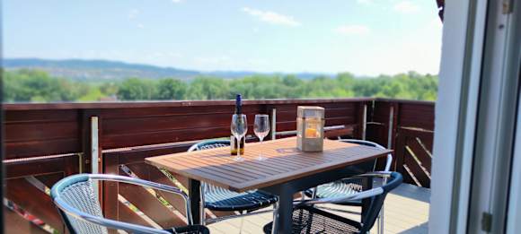 Balkon mit Aublick auf die Rhön und Hessisches Kegelspiel