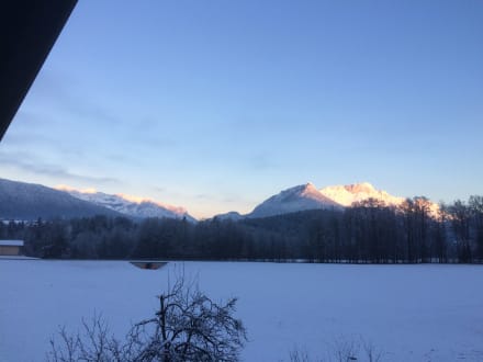 Ausblick vom Wohnzimmerbalkon auf den Untersberg etc.