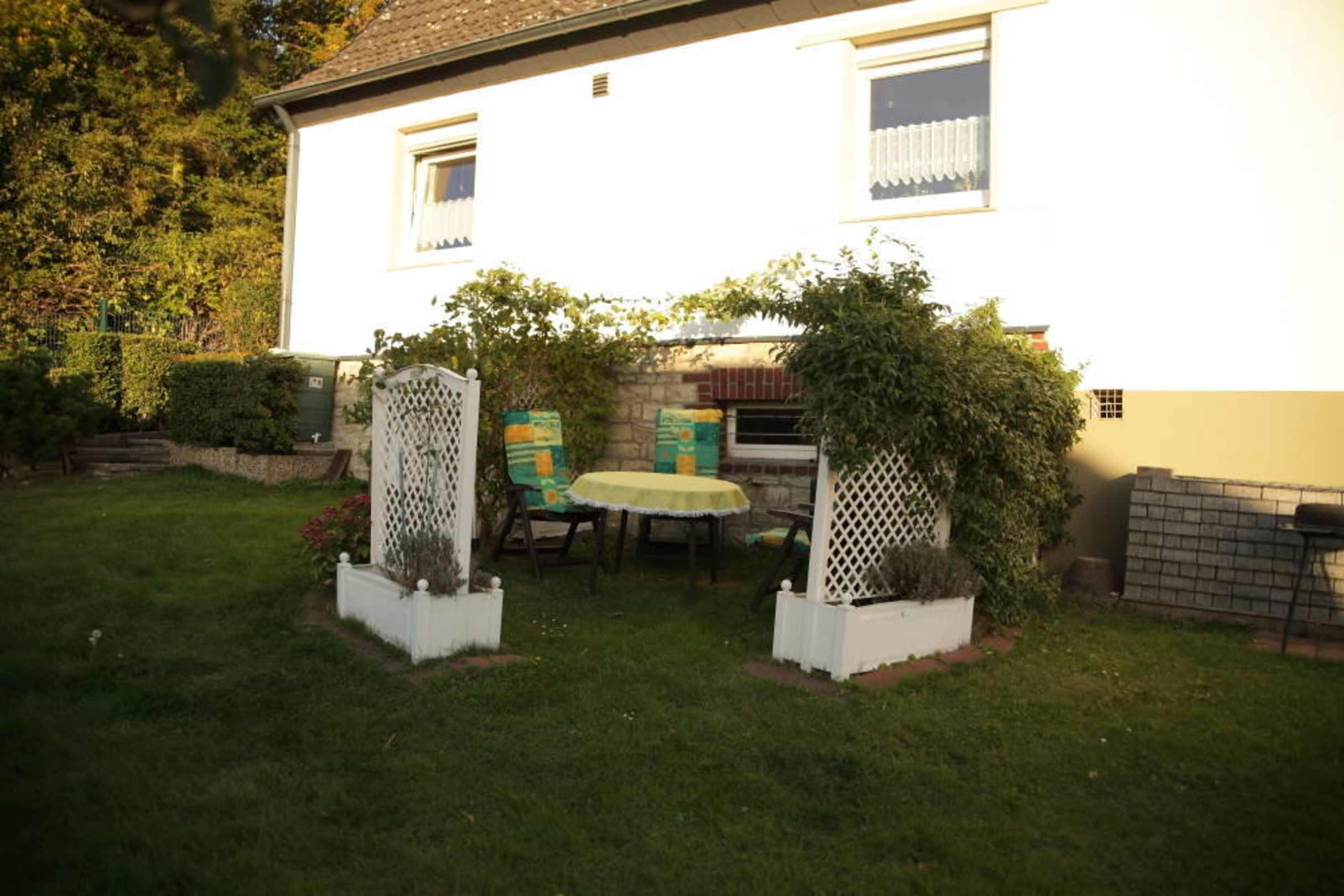Windgeschützte Sitzecke und Grillplatz