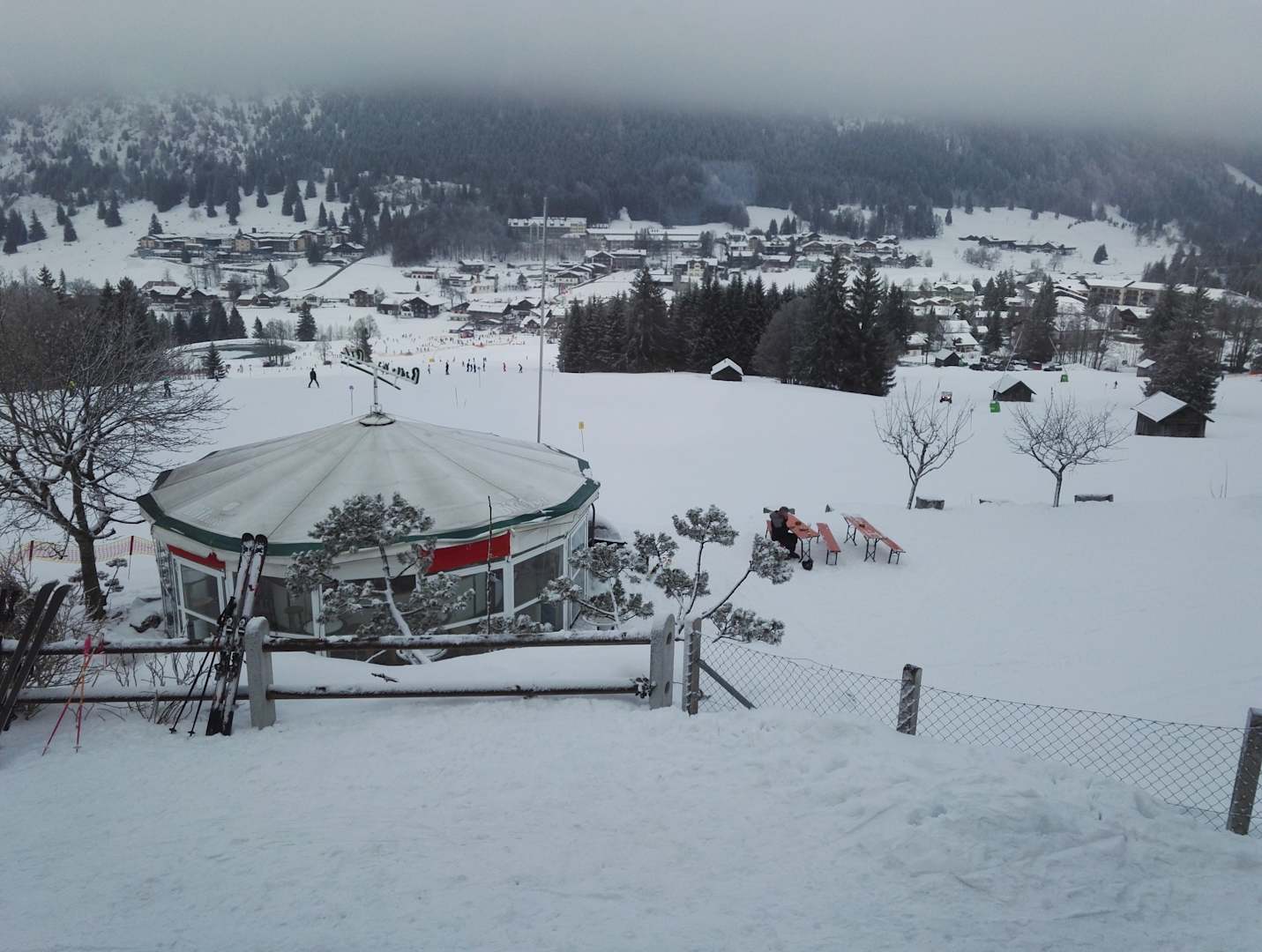 Skipiste und Skisportort von oben