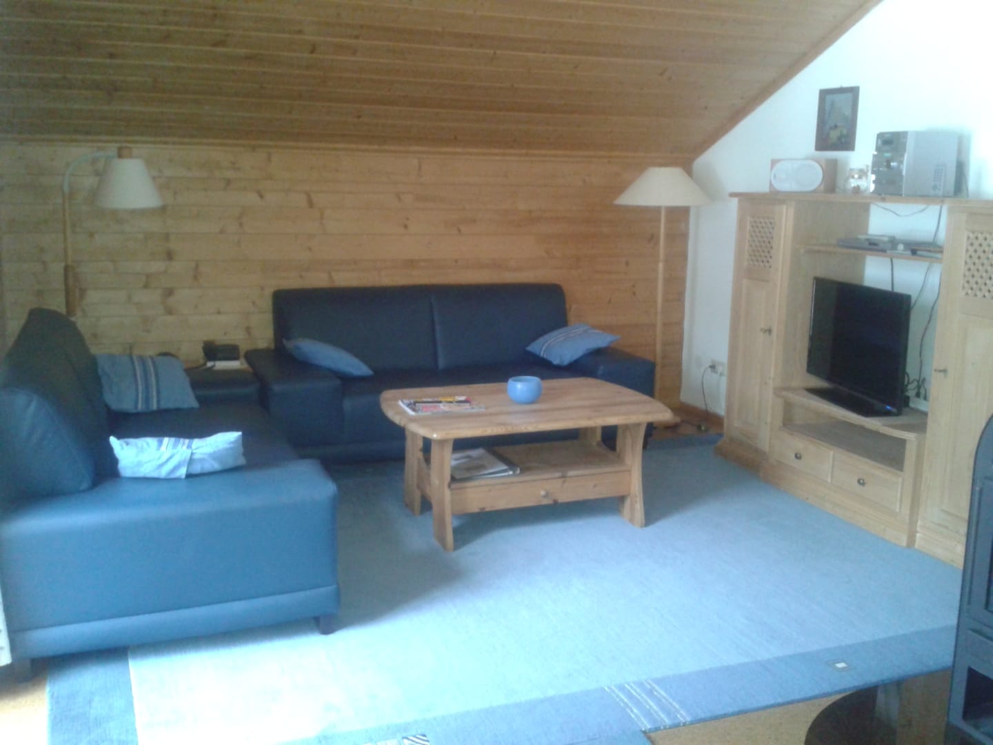 Wohnzimmer mit Fernseher, CD-Player, Stereoanlage, Telefon