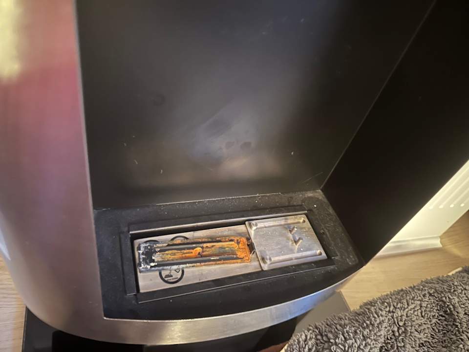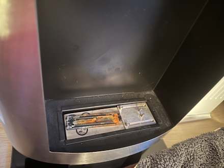 Batteriebetriebener Pseudo Kamin wird hier eingesetzt. Wir haben uns gewundert, das er nicht funktionierte. Batterien keine vorhanden, dafür verhärtete Batteriesäure und Rost.