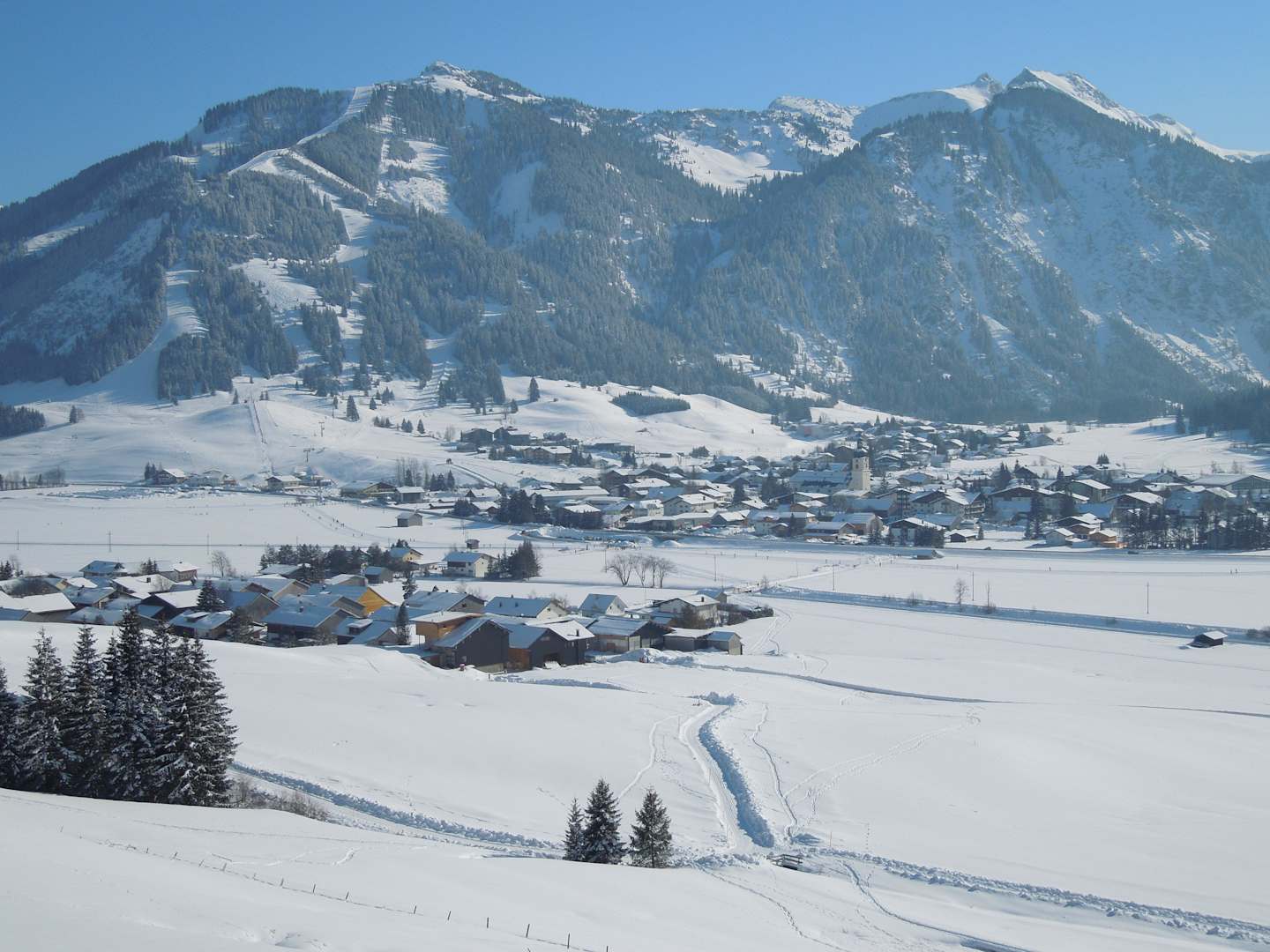 Ausblick vom Wanderweg auf den Ort Tannheim