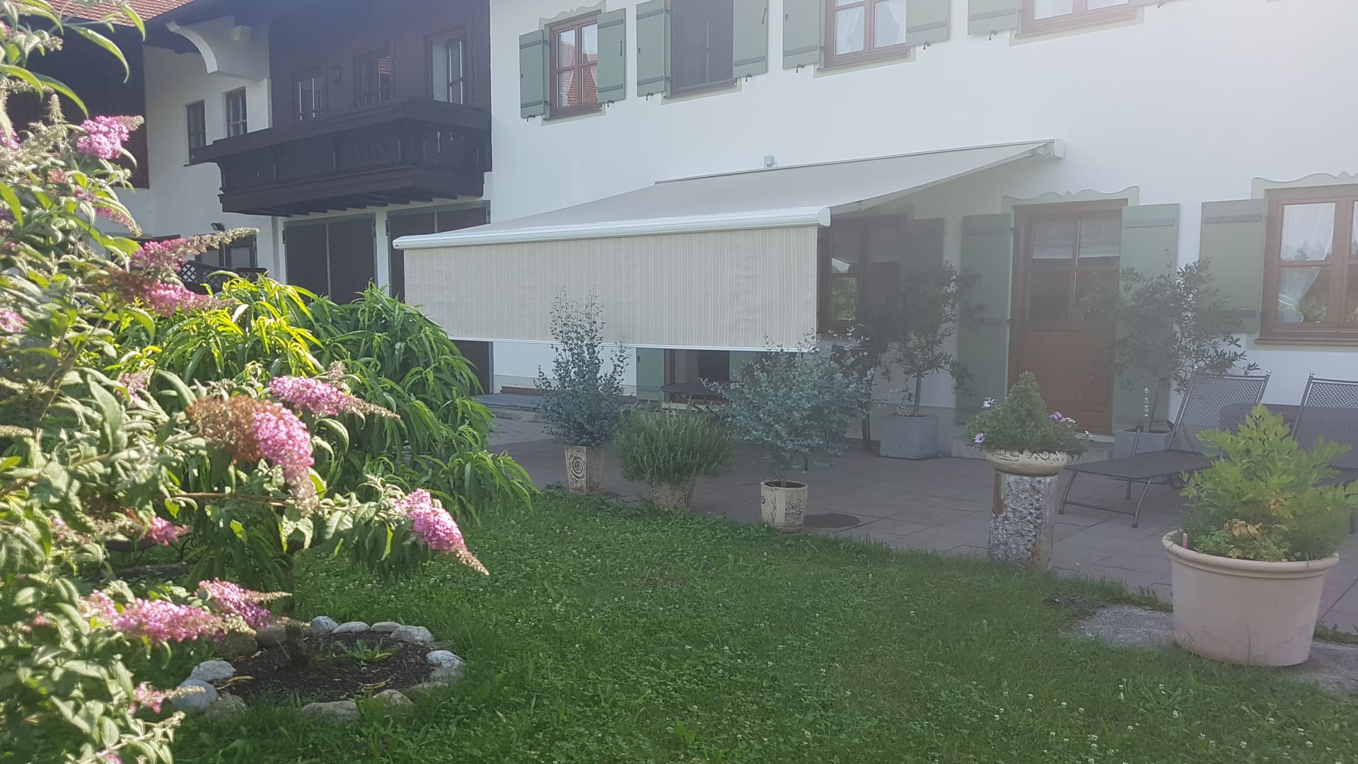 Die neuangelegte Sonnenterasse mit großer Markise.