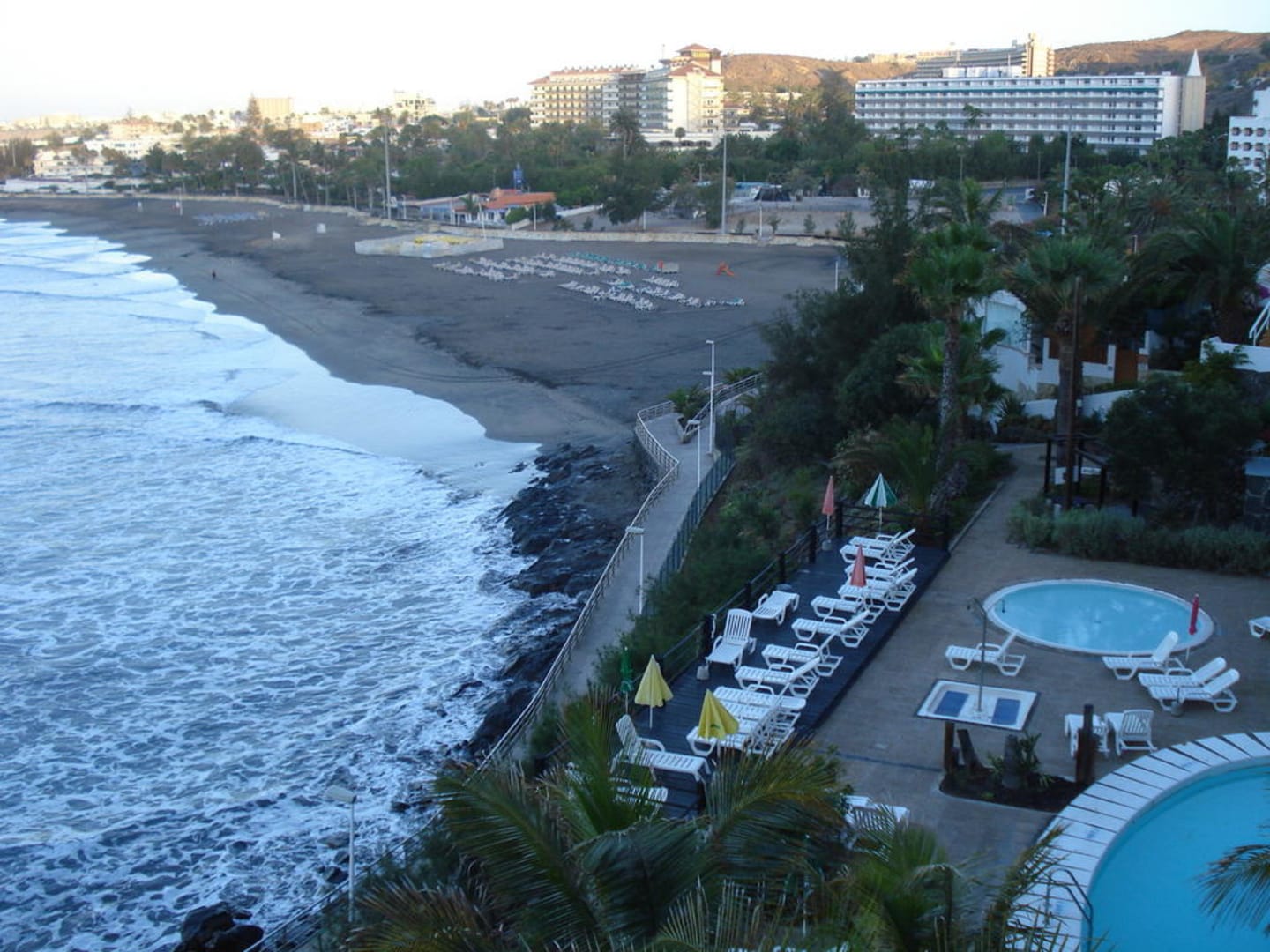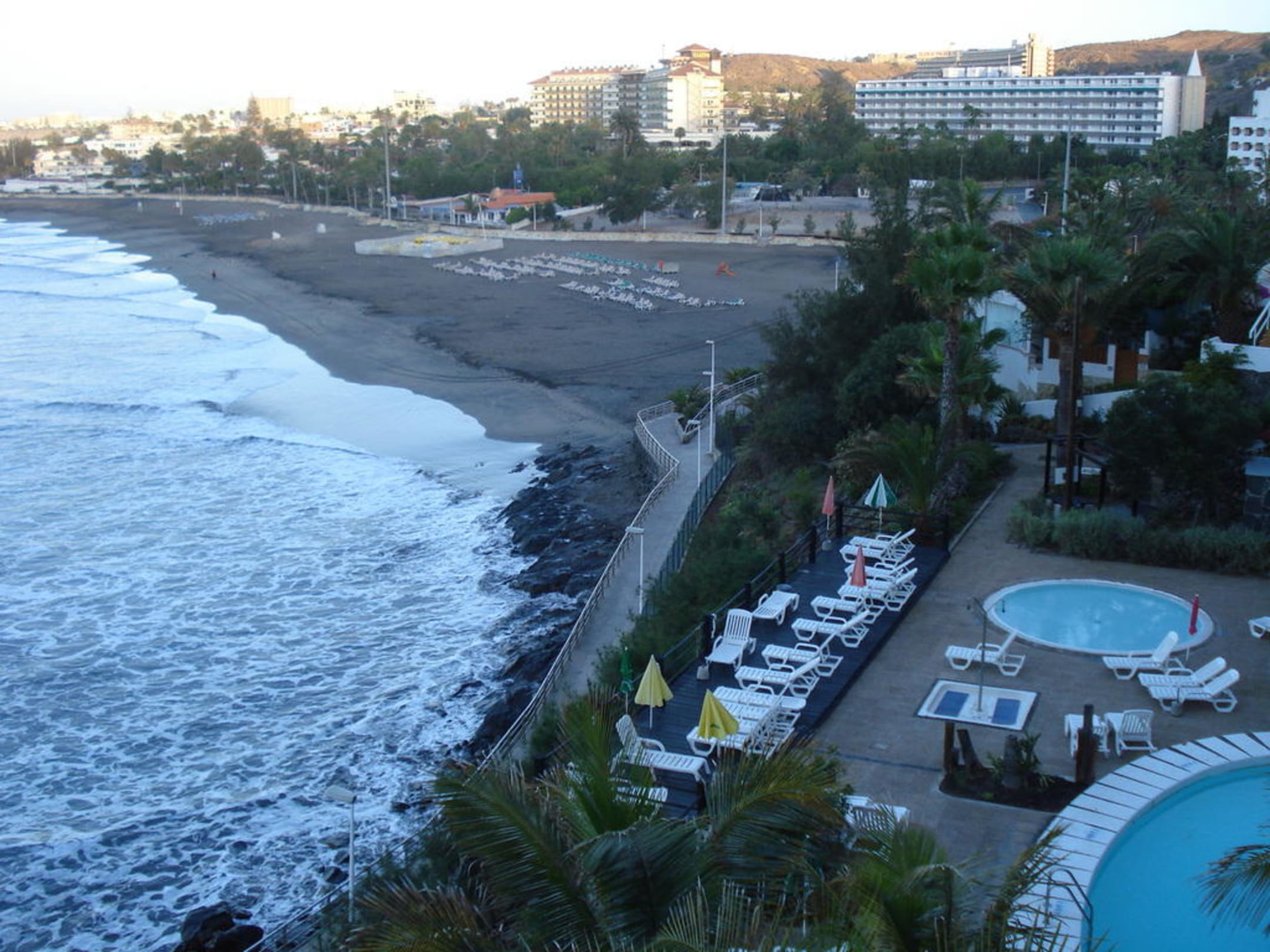 Rechts im Bild der Pool vom Hotel ca. auf halber Höhe der Treppe.Weiter unten sieht man den Weg-Strandpromenade und den Strand.