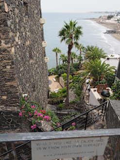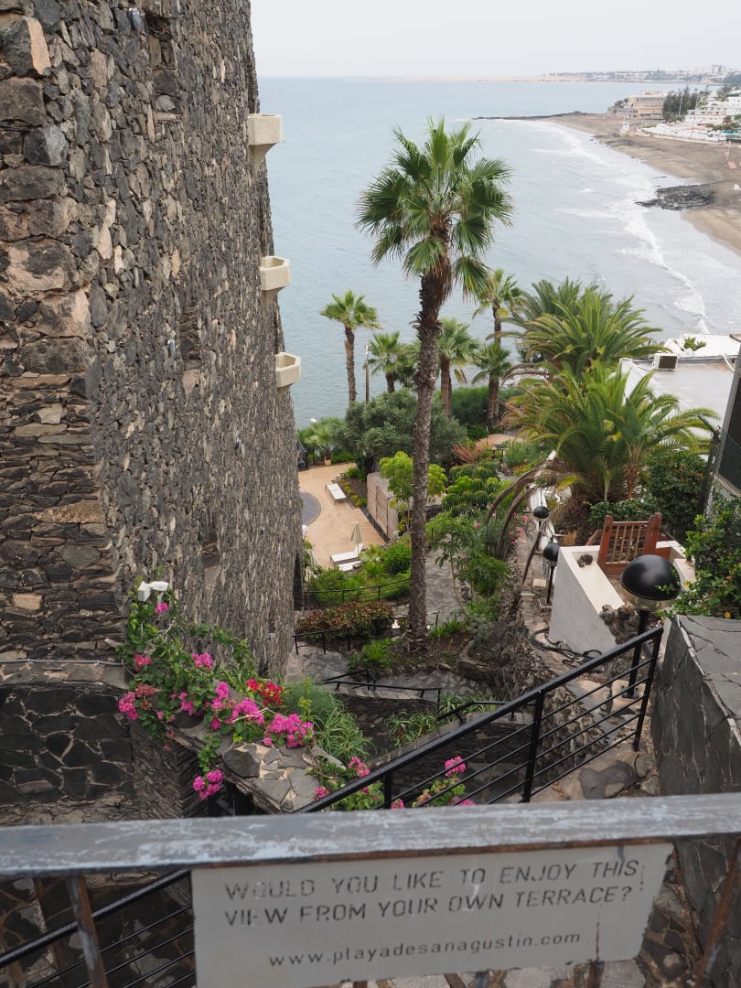 von der Straße auf den Pool und zum Strand