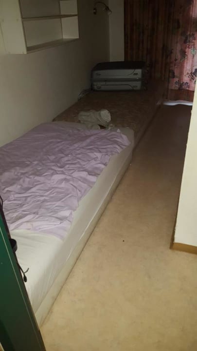 3.+4. Bett- im Hintergrund mit Vorhang, die Eingangstür