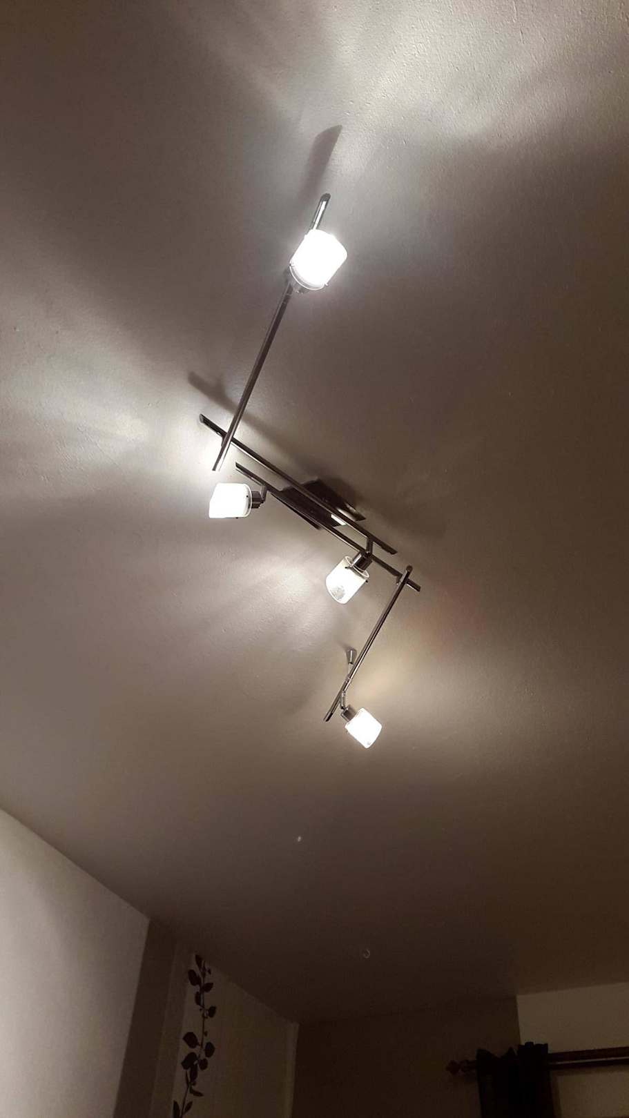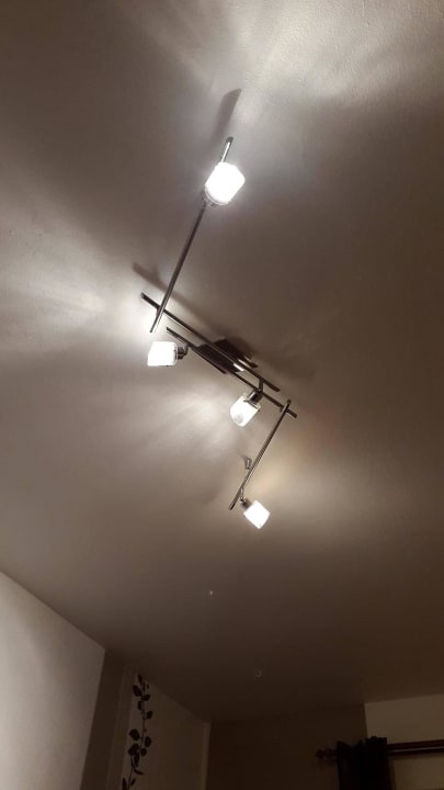 Als wir an kamen, war an dieser Lampe nur 1 Leuchtmittel ok. Auf Nachfrage wurden die neuen nur an die Türklinke gehangen. "Wechseln können sie die ja selber" war der Kommentar dazu