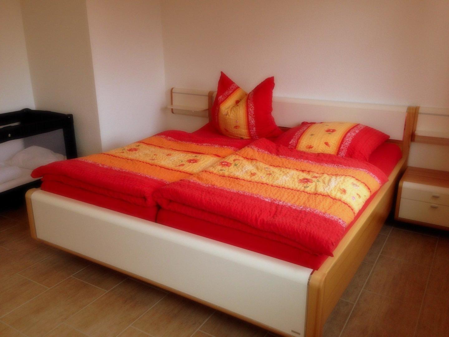Elternschlafzimmer mit Beistellbett.
