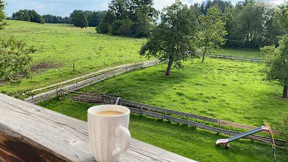 Frühstückskaffee auf dem Balkon
