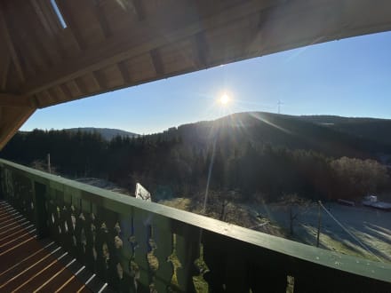 Blick vom Wohnzimmer / großem Schlafzimmer bei Sonnenaufgang