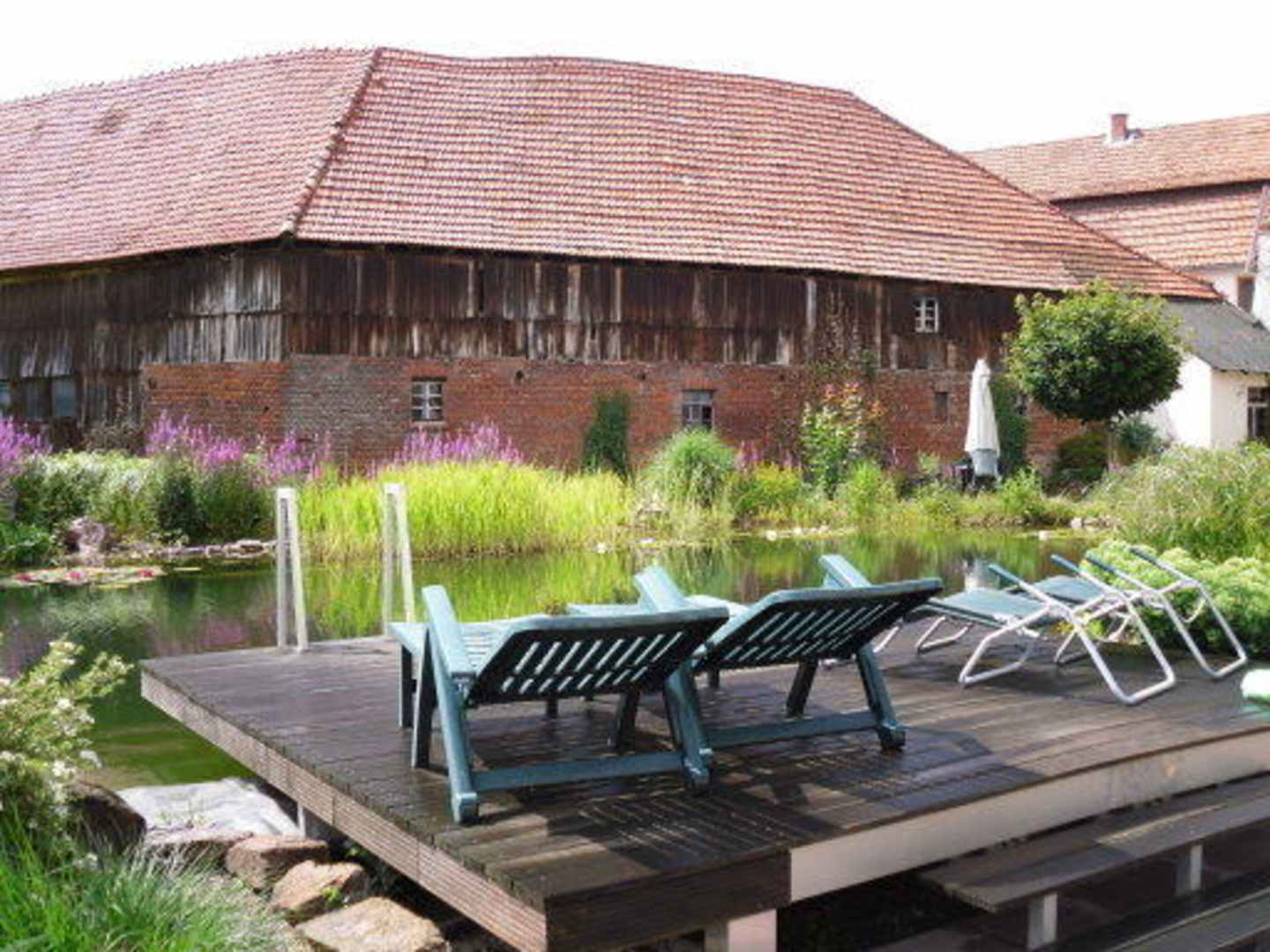 Schwimmteich mit Sonnendeck