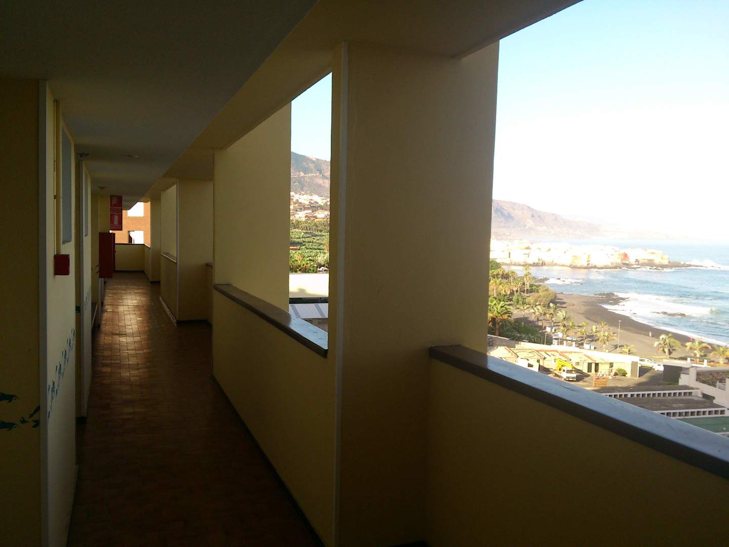 Gang vor den Zimmern mit Ruhebank