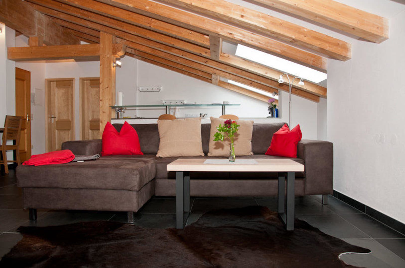 Dachgeschoss Panorama Deluxe, Couch und Küche