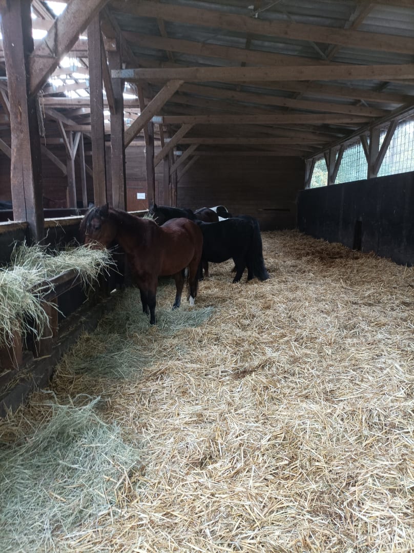 Zurzeit gibt es 16 Ponys/Pferde am Reitplatz auf dem Gelände.