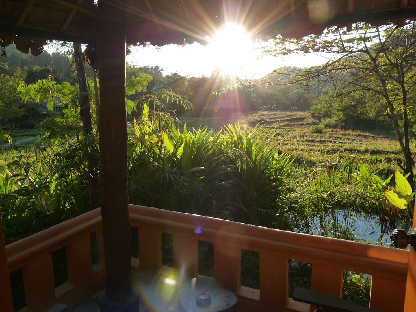 Blick von der Terrasse über die Reisfelder