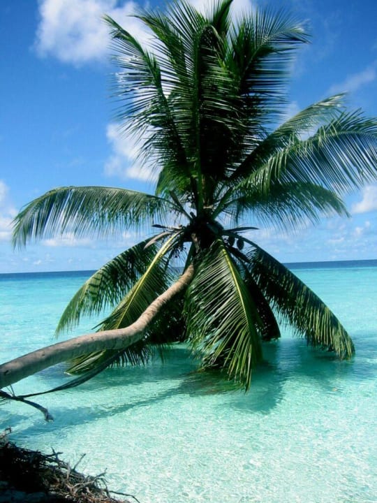 Fihalhohi, ein TraumDies ist mein Lieblingsbild.Bin mal gespannt wann diese Palme ganz im Wasser verschwunden ist.