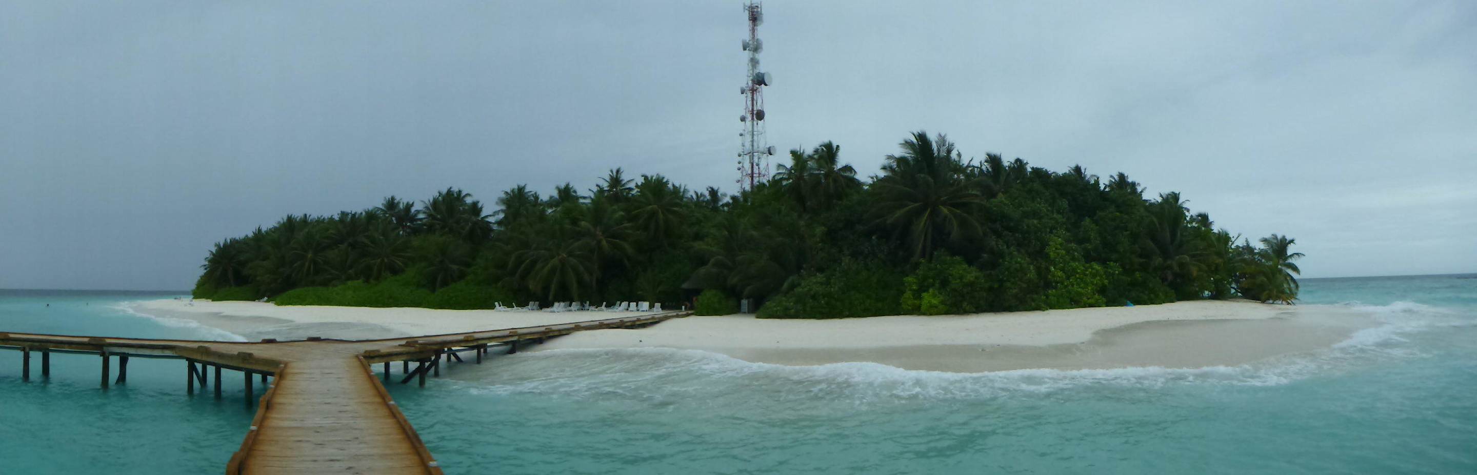 Blick von den Wasserbungalows aus auf die Insel