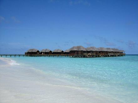 WasserbungalowsWasserbungalows des Fihalhohi Island Resort, Süd Male Atolls, Malediven