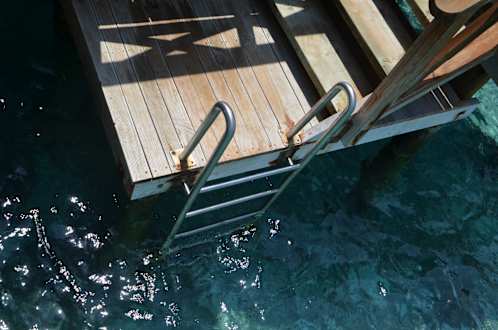 AußenansichtUnd das ist dann die "Leiter" vom Wasserbungalow, über die man ins Wasser gelangt.