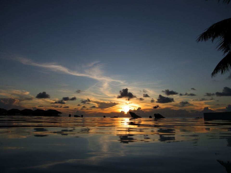 Sonnenuntergang im PoolEin schöner Sonnenuntergang im Pool mit ausnahmsweise (!!!) im Tiefflug passierenden Maledivian Air Taxi.