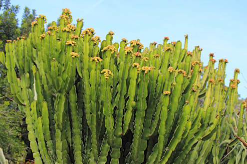 2016: Riesiger Kandelaberkaktus zwischen Pool und Spielwiese.