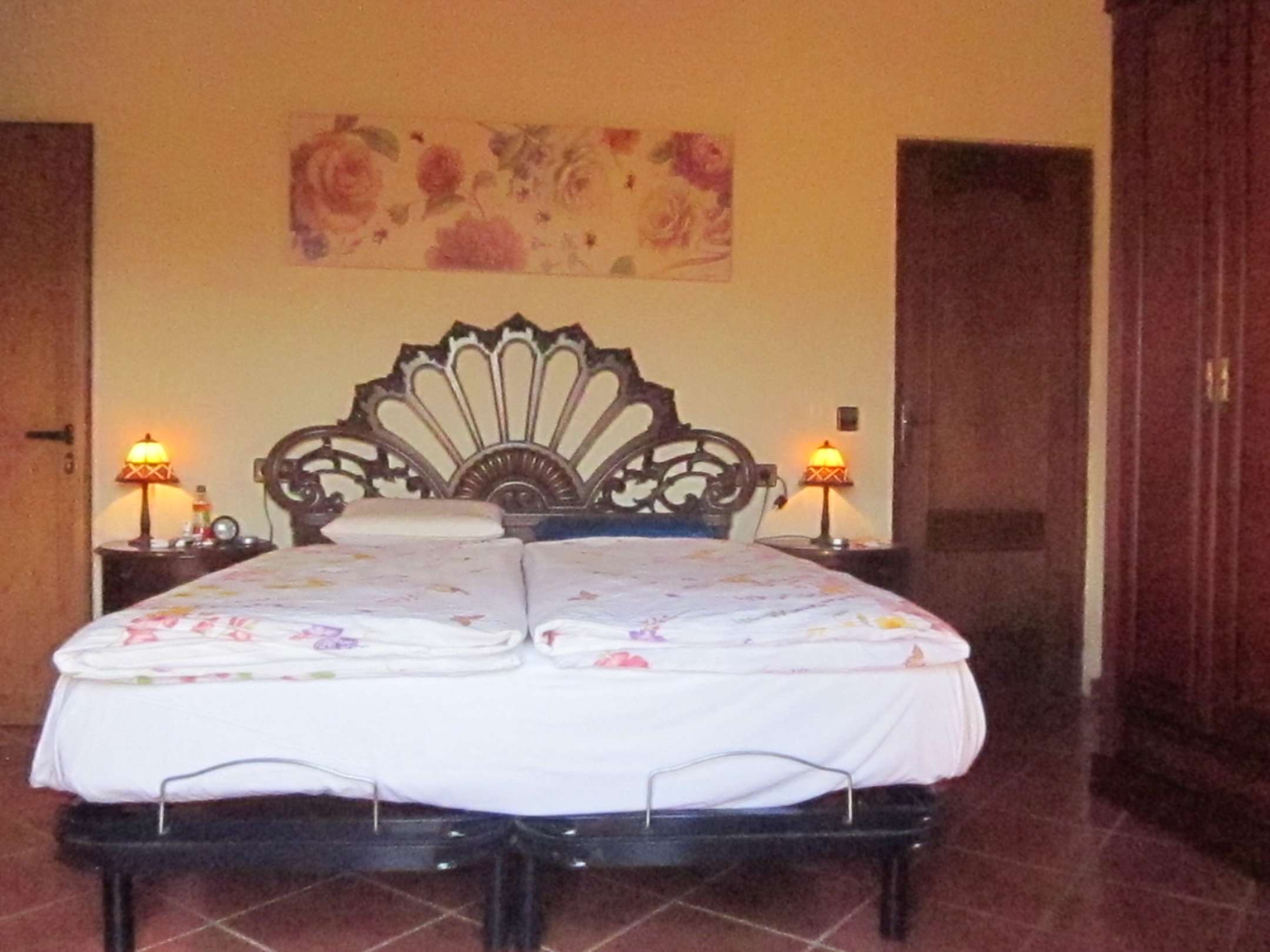 Zimmer6073 Doppelbett im SZ - 2 Betten mit nur einer durchgehenden Matratze (Kopfteil schön, aber mit Verletzungspotential)