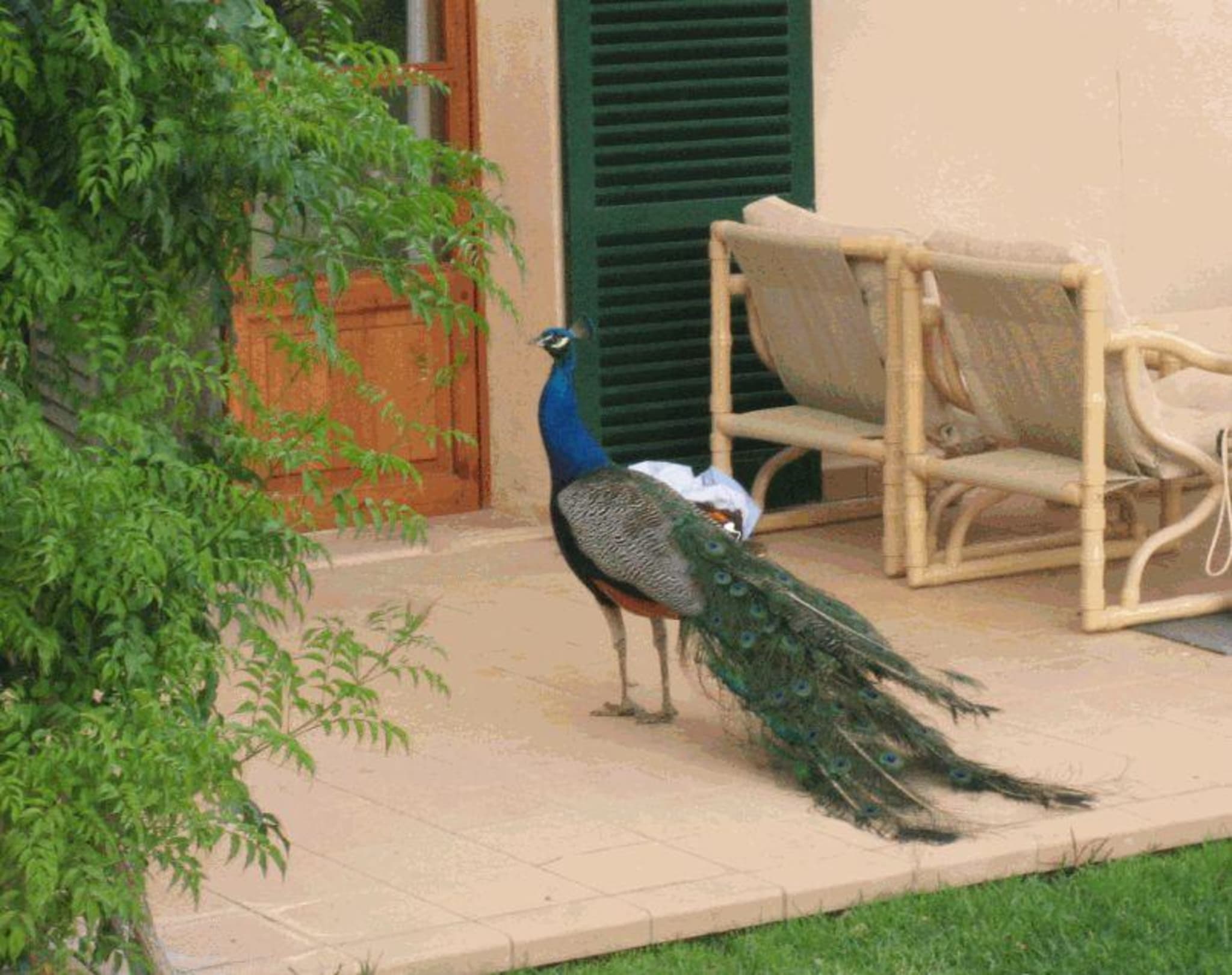 Der Hauspfau zu Besuch auf unserer Terasse