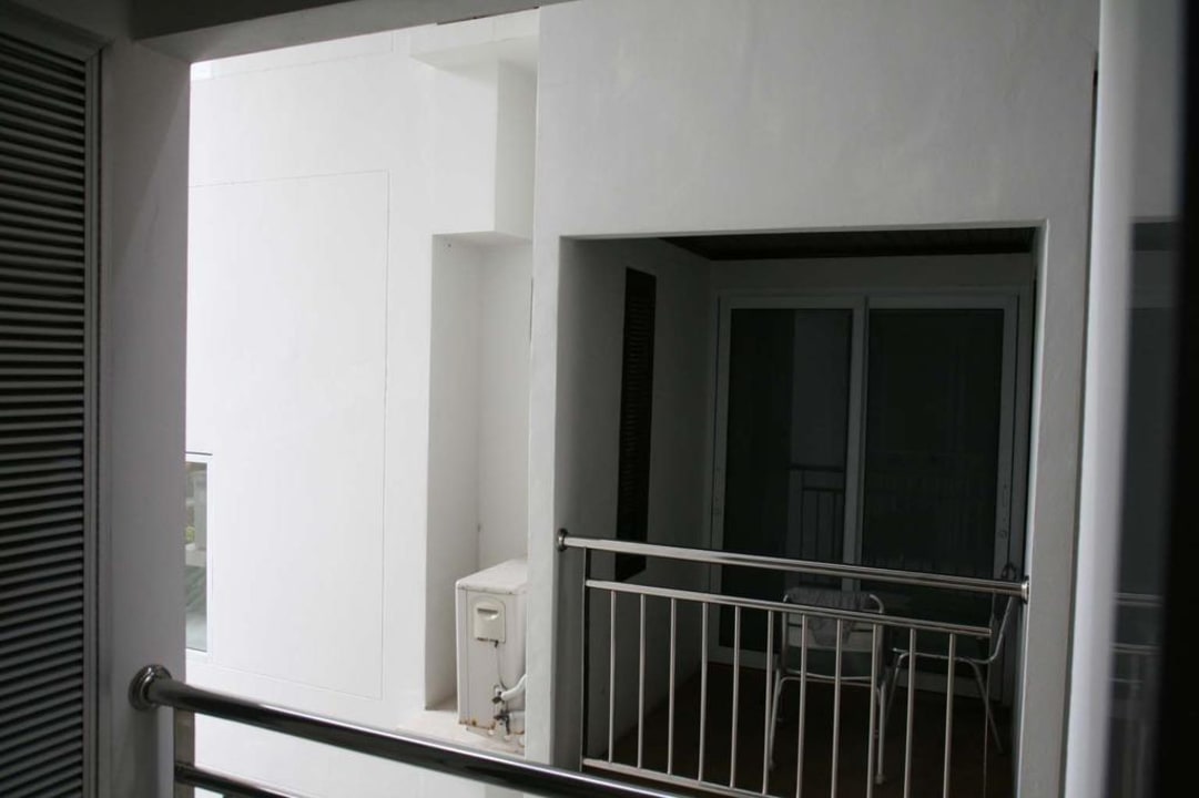 First Room-Zimmerkein Ausblick, wenig bis gar kein Tageslicht. im Bild ist ein Balkon des Nachbargebäudes zu sehen. Abstand ca 120cm