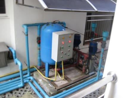 Ausblick vom Mini-Balkon direkt auf eine laute Pumpanlage